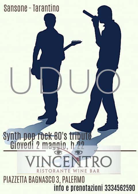 Synth pop, rock, ed 80’s tribute con Uduo da Vincentro, piazzetta Bagnasco, 3 a Palermo, giovedì 02 maggio alle ore 22.00 con IvanTarantino alla chitarra, programmazione e sequencing e Sergio Sansone voce, chitarra e percussioni. Uduo mescola strumenti, crea nuovi arrangiamenti, alterna musicisti e amici sul palco sviluppando un sound personale e inconfondibile. Ingresso libero. Info e prenotazioni 3334562590.