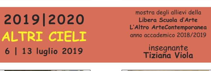 Sabato 6 luglio alle 18 alla galleria L’Altro di via Torremuzza 6 si inaugura la mostra collettiva dal titolo “Altri cieli”, dove saranno esposti i lavori degli allievi della Libera scuola d’Arte.