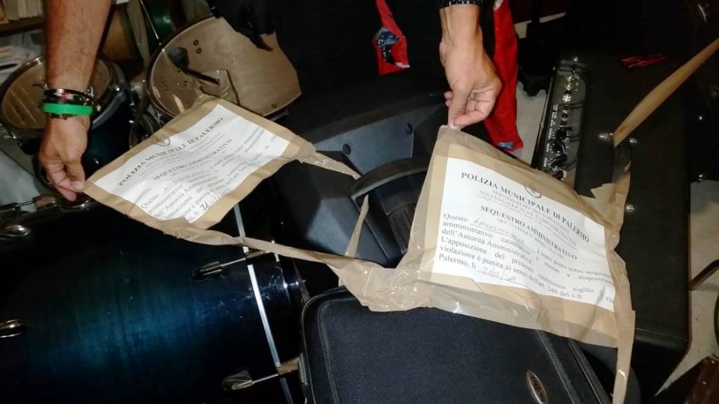 All’atto di un sopralluogo effettuato in un pub di via dei Chiavettieri – dove, senza le dovute autorizzazioni, era in pieno svolgimento un concerto con cinque musicisti – si è proceduto alla contestazione di un verbale di 150 euro ed al sequestro amministrativo per dieci giorni di 19 apparecchiature musicali: batteria, chitarre, tastiere, diffusori audio , mixer e amplificatori per la diffusione musica all’esterno nella parte antistante il pubblico esercizio. Inoltre è stata elevata un’altra sanzione, di 50 euro, in quanto il locale era sprovvisto della prescritta relazione fonometrica relativa alle apparecchiature elettroacustiche in uso.