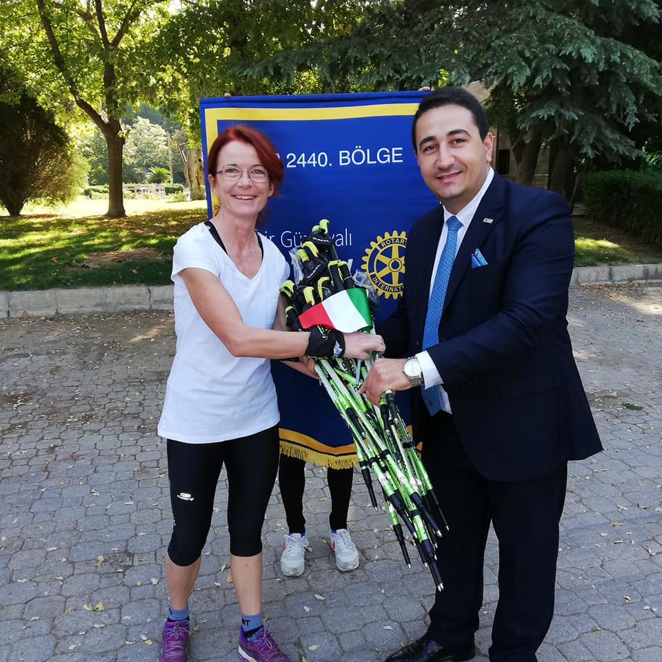 Un progetto per la diffusione a scopo terapeutico del Nordic Walking in Turchia. L’iniziativa si deve a un’idea del Rotary Club Palermo Teatro del Sole e di due italiane che vivono in Turchia, in collaborazione con un Rotary Club di Izmir. Il Nordic Walking, sconosciuto in Turchia, presenta numerosi benefici a scopo terapeutico. Il progetto prevede accordi con le università di Izmir per sperimentare e testare i benefici di questo sport e creare anche in Turchia protocolli per varie patologie. Con la consegna dei tipici bastoncini da parte del presidente del Rotary Club Palermo Teatro del Sole Nicola Bruno al Rotary Club Güzelyalı di Izmir e al suo presidente, il Sig. Serhat, prende ufficialmente il via il Nordic Walking Izmir.