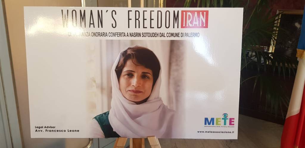 Il sindaco Leoluca Orlando, ha conferito la cittadinanza onoraria di Palermo a Nasrin Sotoudeh, avvocata e attivista impegnata nella tutela dei diritti civili e politici, e per questo motivo in carcere, condannata a 33 anni e 148 frustate. Il riconoscimento, infatti, è stato consegnato simbolicamente all’associazione Mete Onlus, che la farà pervenire al marito.