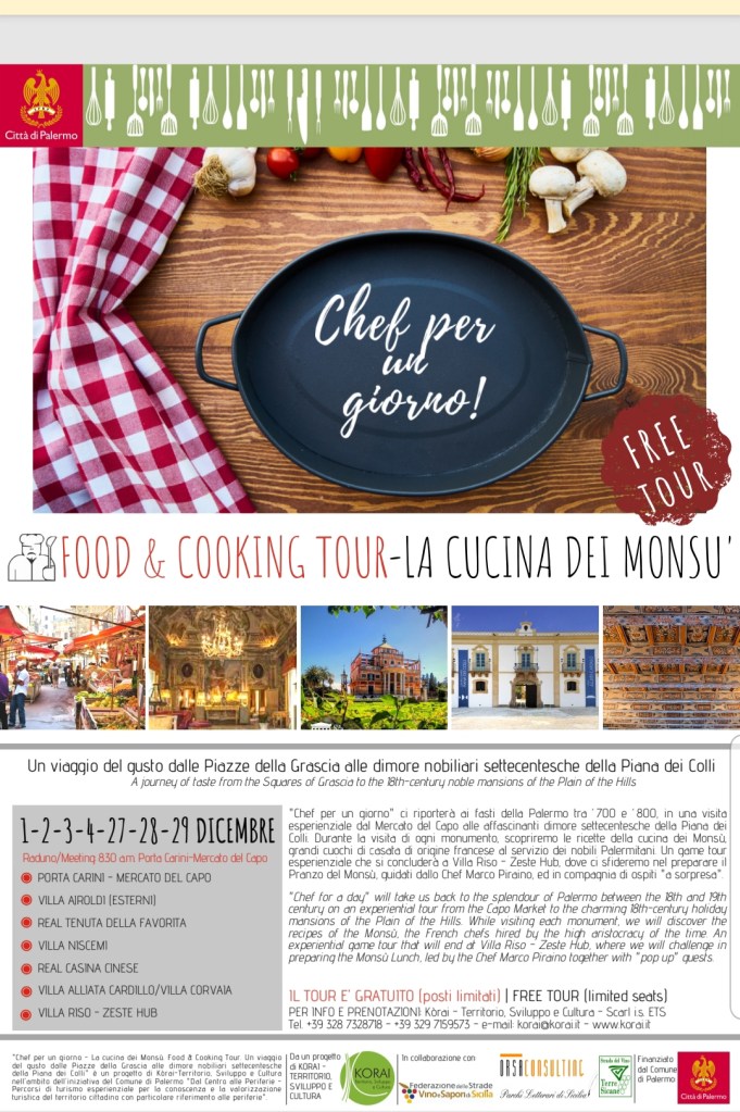 Prende il via domenica 1° dicembre“Chef per un giorno. La cucina dei Monsù”, terzo progetto di Turismo Esperienziale, realizzato nell’ambito dell’Avviso pubblico “Dal Centro alle Periferie” indetto dall’Amministrazione comunale.