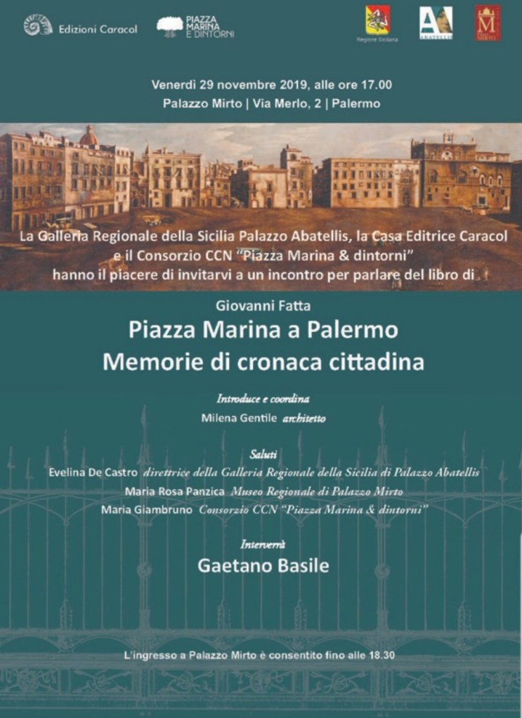 Giovanni Fatta esponente del casato che possiede il Palazzo che da esso prende nome, appunto Palazzo Fatta, racconta in un libro cose di Piazza Marina. La lettura promette di essere molto intrigante e piena di cose da scoprire. Il libro sarà presentato venerdì 29 novembre alle ª Palazzo Mirto, in via Merlo, proprio nei pressi di Piazza Marina. Introdurrà Milena Gentile, interverranno Evelina De Castro, della Galleria dl Palazzo Abatellis, Maria Rosa Panzica di Palazzo Mirto, Maria Giambruno dell’associazione “Piazza Marina & dintorni” ed il noto divulgatore di storie palermitane Gaetano Basile.