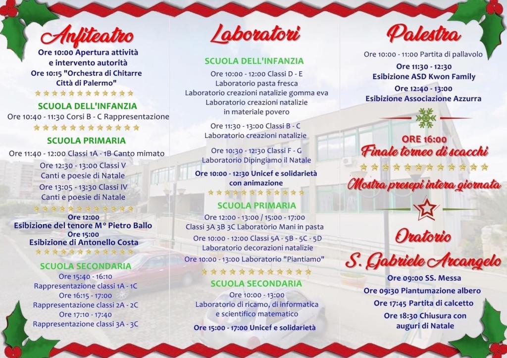 Una giornata intera dedicata ai ragazzi ed alle loro famiglie quella di sabato prossimo 14 dicembre nella scuola Principessa Elena di via Ustica. L’evento, che si propone il coinvolgimento della comunità, valorizzando gli alunni, i docenti, le famiglie, il territorio, si svolgerà all’insegna del divertimento non dimenticando la funzione educativa e gli apprendimenti della scuola. Numerose le attività in programma. Si parte con la benedizione dell’albero di ulivo che sarà piantumato a piazza San Gabriele. Seguiranno rappresentazioni musicali, tra cui il canto mimato, che culmineranno con l’esibizione del tenore Pietro Ballo e dell’attore Antonello Costa. Contemporaneamente i ragazzi daranno vita ai laboratori dove creeranno oggetti di Natale in materiale povero, ma anche pasta fresca, mentre altri ragazzi si sfideranno nella pallavolo. Ancora altri laboratori saranno dedicati a svariati temi, dal ricamo all’informatica alla matematica. Di pomeriggio ci sarà la finale del torneo di scacchi e si giocherà a calcetto, mentre altri ragazzi si esibiranno nelle performance teatrali. Per tutta la giornata si potranno vedere i presepi realizzati dai ragazzi con materiale riciclato, mentre sono previsti due momenti dedicati all’Unicef, partner della scuola in un progetto pilota.