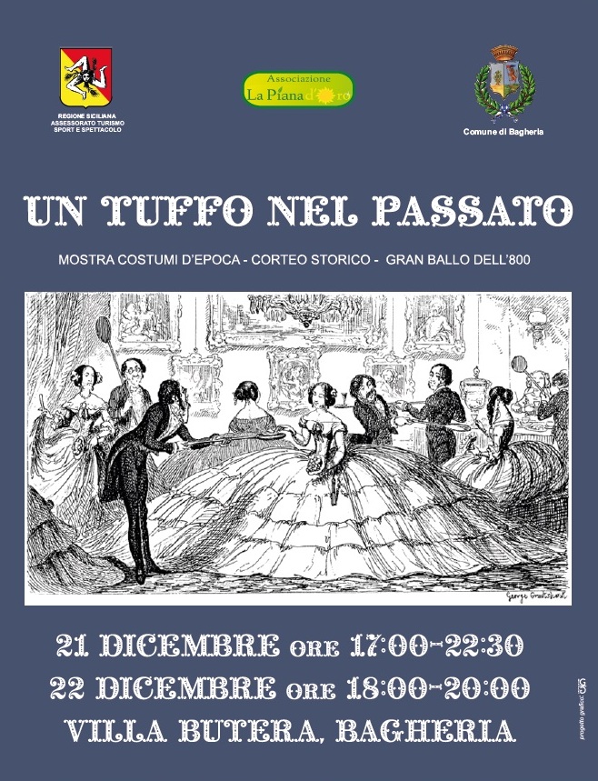 La Città delle Ville fa “Un tuffo nel passato” con un evento turistico e culturale d’eccezione organizzato dall’associazione “La Piana d’Oro” che si svolgerà a Bagheria il 21 e 22 dicembre 2019, patrocinato dell’Assessorato regionale al Turismo, Sport e Spettacolo e dal Comune di Bagheria e coordinato da Rossella Scannavino.