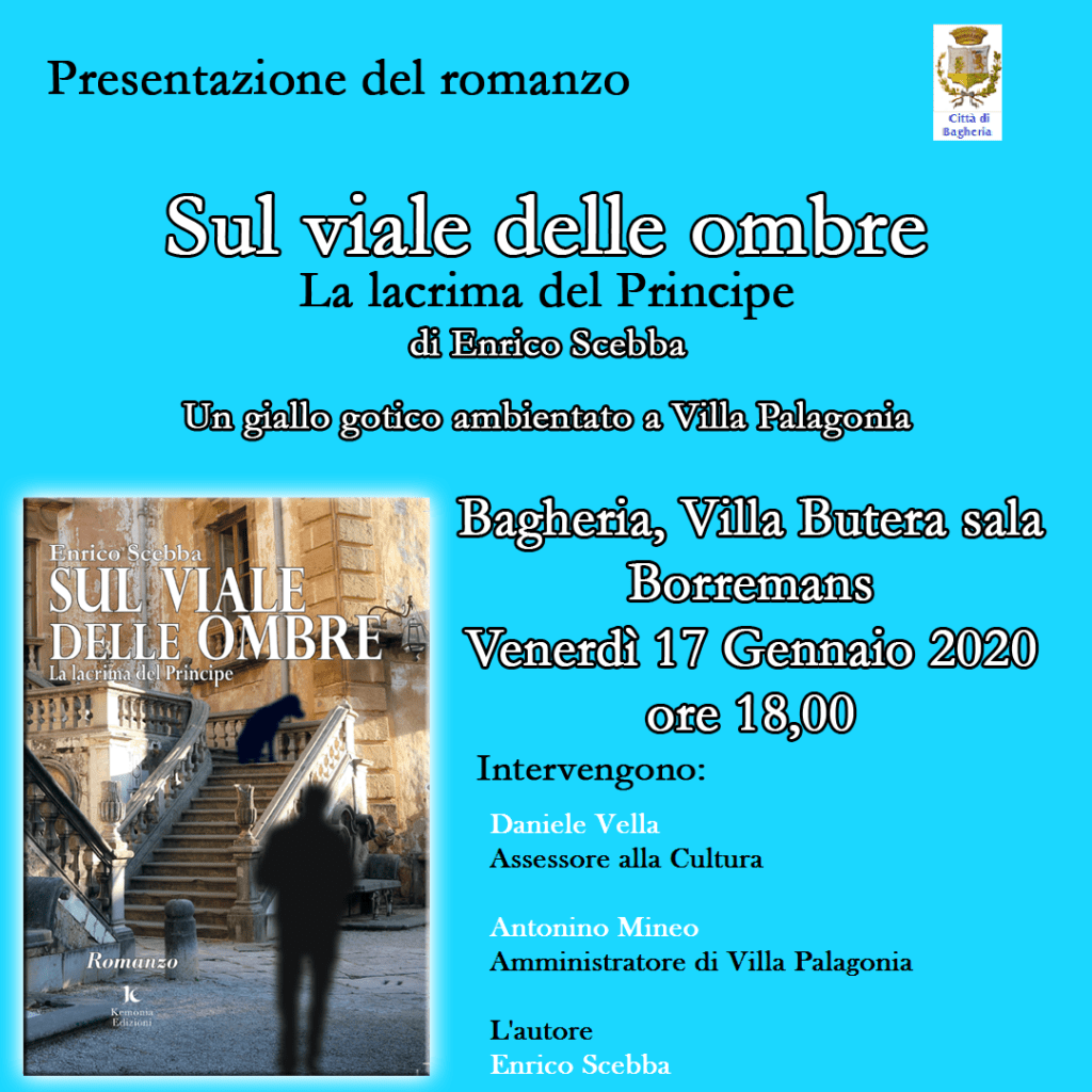 Secondo appuntamento del programma “Il Mese della lettura – incontro con gli autori”. Sarà presentato venerdì 17 gennaio 2020, alle ore 18:00, presso la sala Borremans di villa Butera, il libro “Sul viale delle ombre La lacrima del Principe” di Kemonia scritto da Enrico Scebba.