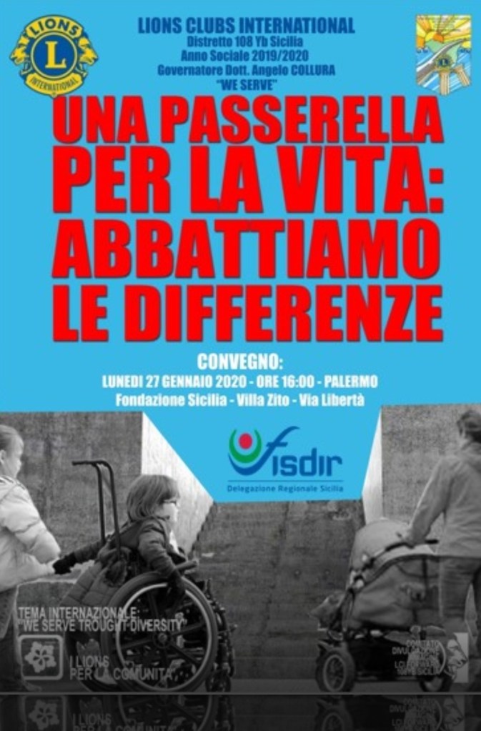 In collaborazione con il Lions Club Sicilia e il Comune di Palermo, la Fisdir Sicilia sarà protagonista di “Una Passerella per la Vita: Abbattiamo le Differenze”, evento che si svolgerà Lunedì 27 Gennaio 2020 ore 16:00 presso Villa Zito sita in Via Libertà n°52.
