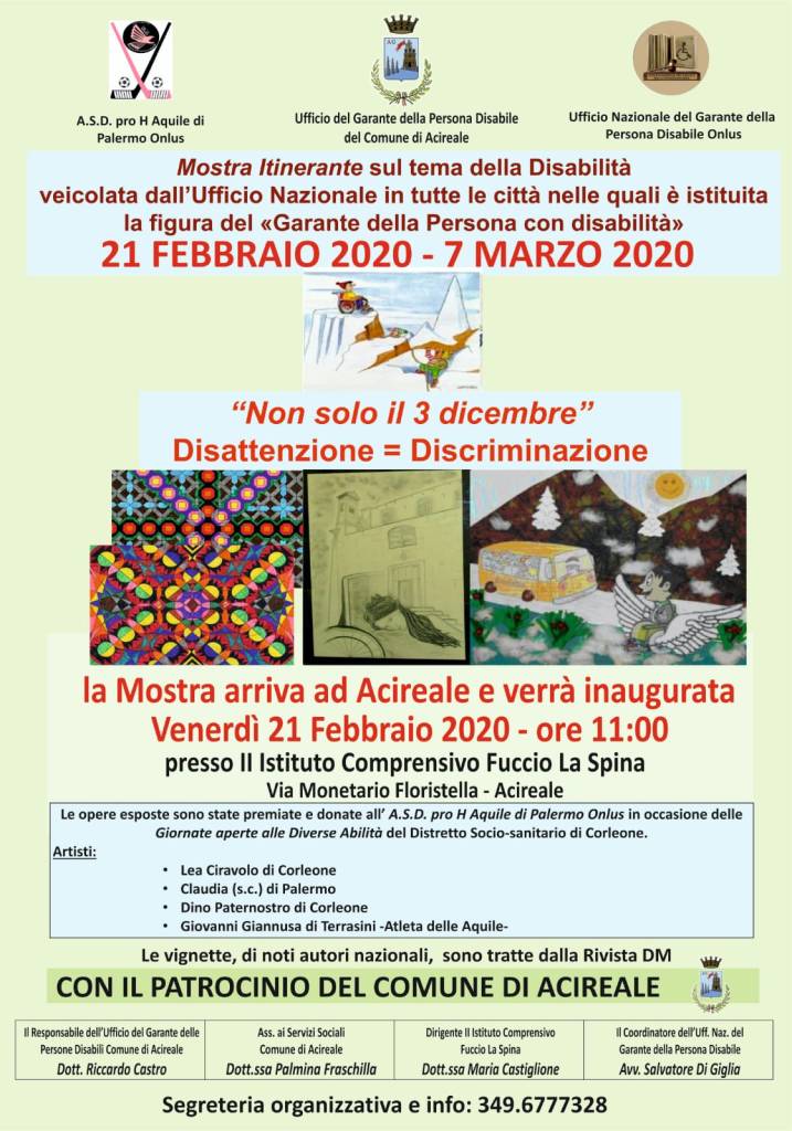 Sarà allestita ad Acireale la mostra itinerante dell’Ufficio nazionale del garante della persona disabile che viene promossa in tutte le città nelle quali è stato istituito l’Ufficio allo scopo di sensibilizzare l’opinione pubblica sulle esigenze della persona con disabilità.