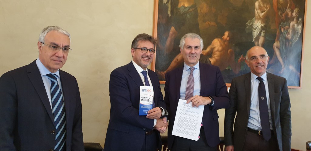L’Università di Palermo ha sottoscritto stamattina a Palazzo Steri, sede del Rettorato, una convenzione con l’Amat. Si tratta di una convenzione per la mobilità sostenibile dedicata alla comunità universitaria che prevede che studenti docenti e personale tecnico amministrativo usufruiscano di tariffe agevolate mentre i servizi di car e bike sharing saranno estesi nelle sedi universitarie di Palermo e nei poli decentrati di Agrigento Caltanissetta e Trapani. Nella foto sopra il momento della firma con da sinistra Domenico Caminiti responsabile del Car sharing, il Presidente dell’Amat Michele Cimino, il Magnifico Rettore Fabrizio Micari, il Direttore dell’Università Antonio Romeo.