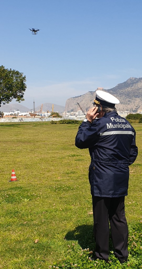 L’innovazione tecnologica è stata presentata stamattina sul prato del Foro Italico alla presenza del Comandante della Polizia Municipale Vincenzo Messina (nella foto sopra). ” I droni permetteranno di controllare le situazioni a rischio, barbecue e assembramenti- spiega Messina- . È uno strumento utile anche per convincere le persone a restare a casa “.