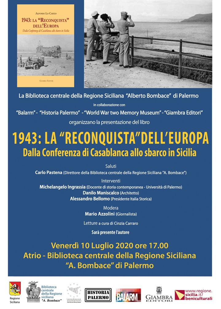 dalla conferenza di Casablanca allo sbarco in Sicilia” di Alfonso Lo Cascio. La presentazione avrà luogo venerdì 10 luglio alle 17 nell’atrio della Biblioteca centrale della Regione Siciliana.