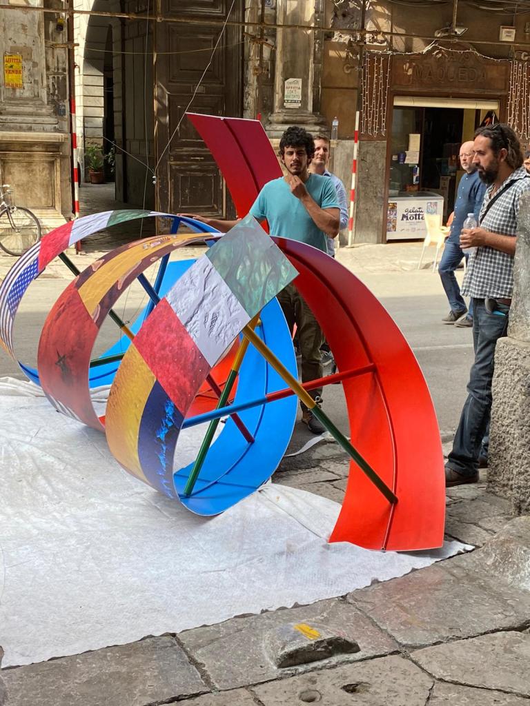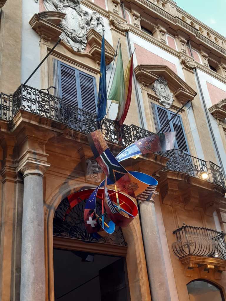 Mercoledì 16 settembre dalle 19 in poi tra le due corti esterne e la Cavallerizza di Palazzo Sant’Elia si inizia con l’installazione di Max Serradifalco, il “DNA delle Nazioni” un lungo nastro formato dalle bandiere dei diversi Paesi che segue la forma elicoidale del DNA; alle 19 sulla loggia che si affaccia sulla corte principale, Mario Bajardi proporrà “God is burning”, performance live e video ispirata al tema della Rinascita. Seguirà una “performance partecipata” di Gandolfo Gabriele David: l’artista lavora da tempo sul valore simbolico dei “pani” cerimoniali, strumento di condivisione verso l’interno della Cavallerizza che ospiterà le ultime opere di Nicola Pucci della serie inedita “Bubbles”.