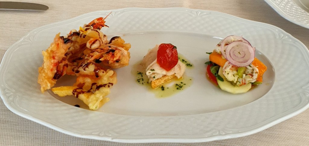 Qui Giuseppe Finocchiaro, patron del locale (a sinistra nella foto con Aldo Palmeri, al centro, presidente del Club Corone Oro Sicilia), e lo chef Antonio Buscema (a destra) propongono pesce freschissimo servito secondo ricette sempre rinnovate. Antipasti gourmet, a base di gambero rosso di Mazara, carpacci di tonno e di pesce spada, filetti di pesce fritto croccante.