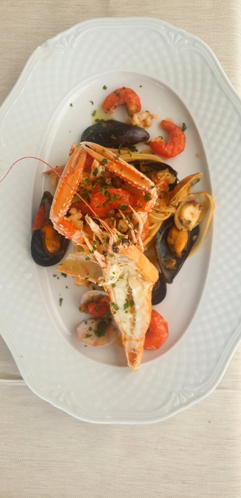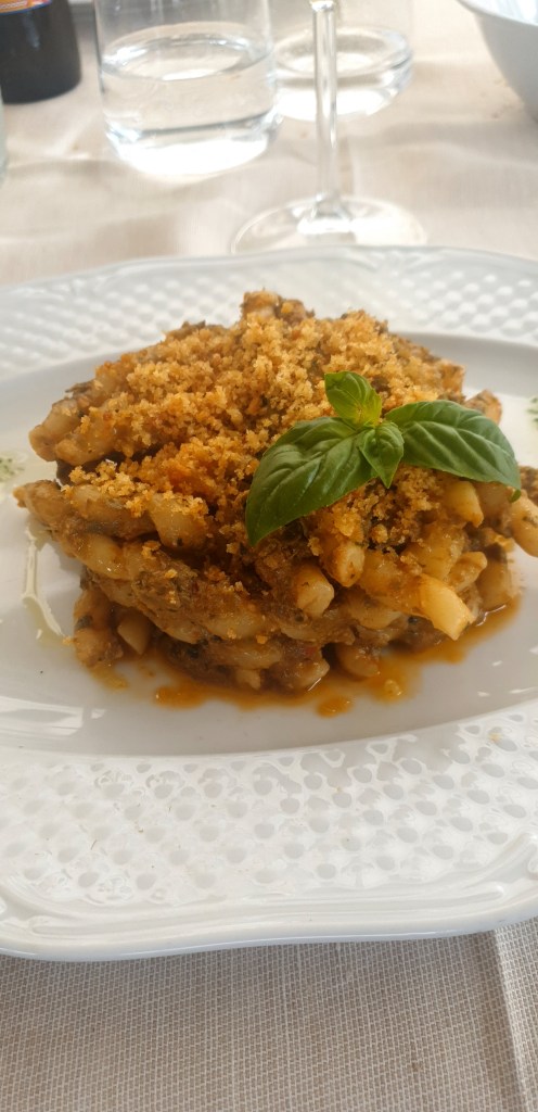 Scelta di primi piatti, leccornie da ghiottioni. Dalle linguine con sughetto di mare con astice e frutti di mare, al tortino di busiate con sarde e pangrattato brustolito.