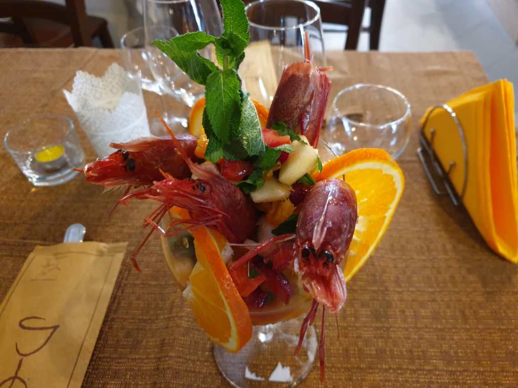 E per i secondi il croccante fritto misto di pesce, gli involtini di pesce spada, la tagliata di tonno, i gamberi al pistacchio, la zuppa di pesce, l’aragosta.