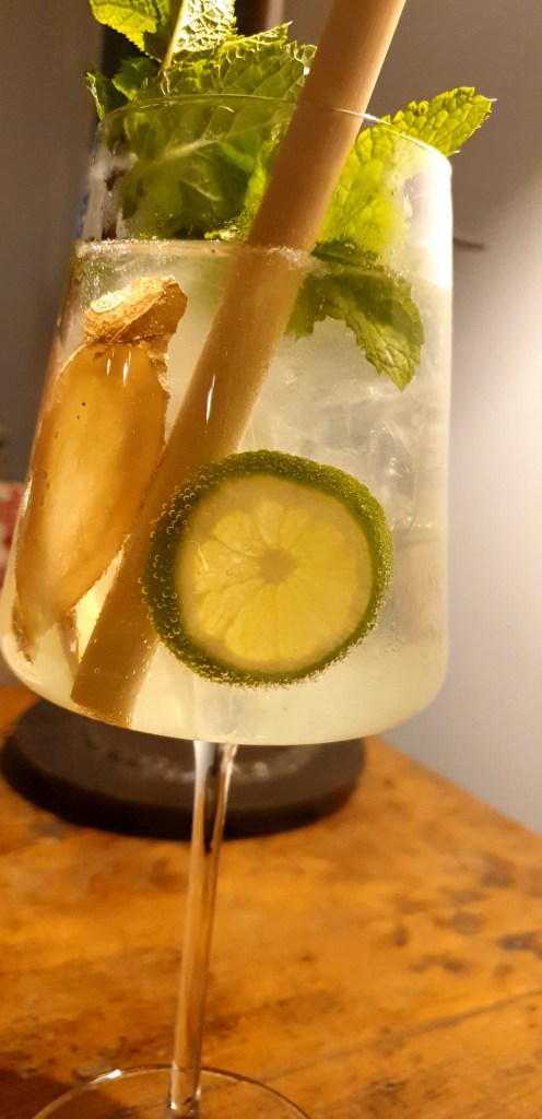 Danilo Conti ci accoglie con dei drink buonissimi e scenici. Grandi fette di limone ciuffi di menta fresca. Buoni da guardare e poi per i profumi e i sapori.