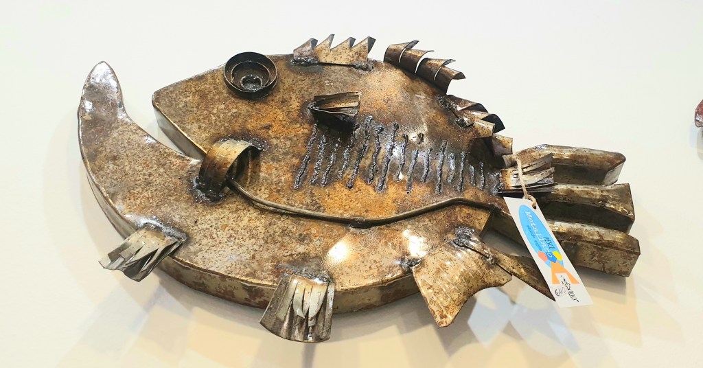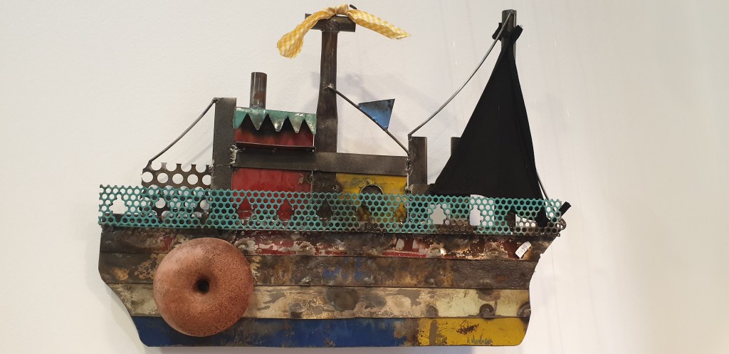 Lamiere deformate che nelle mani di Luisa diventano pesci divertenti, allegri galeoni.