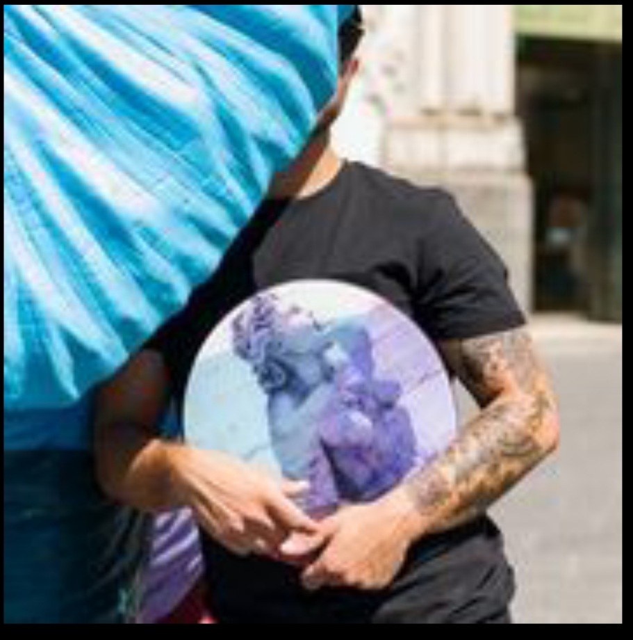 Ligama realizza due piatti tondi in vetro, presentati separatamente all’interno della confezione del Magnum così da sottolineare l’importanza singola e doppia di queste due ninfe destinate a diventare due creature mostruose. La leggenda racconta che Scilla (“colei che dilania”) fece innamorare di sé il pescatore Glauco che per lei respinse la maga Circe che si vendicò, trasformando Scilla in una creatura mostruosa con sei teste di cani rabbiosi e ringhianti. Scilla sconvolta si nascose in un antro delle coste calabresi seminando stragi tra i naviganti che vi passavano vicino. Cariddi (“colei che risucchia”) mangiò i buoi di Eracle e Zeus, per punirla, la trasformò in un orribile mostro che ingoiava tre volte al giorno enormi quantità d’acqua per poi sputarla, trattenendo però tutti gli esseri viventi che vi trovava. Le due figure mitologiche emergono, nei piatti di Ligama, da campiture geometriche dai colori accesi e mostrano una solennità tipica delle statue classiche. La fragilità del vetro, inoltre, rimanda a quella dei ruderi abbandonati cui Ligama dona nuovo segno e senso con i suoi interventi. Ligama si rifà all’epica greca, a Scilla e Cariddi, descritti da Omero nell’Odissea come i due mostri marini che con il moto perpetuo delle correnti scandiscono l’ingresso allo Stretto di Messina, consentendo l’accesso ai tesori dell’Isola solo ai viaggiatori più virtuosi. Ligama ritorna alle origini dell’arte figurativa. I colori e i tratti tipici della sua street art si fondono e convivono con reperti d’arte classica che si stagliano, con stridente e armonica bellezza, sullo sfondo di un murales virtuale stampato su vetro temperato.