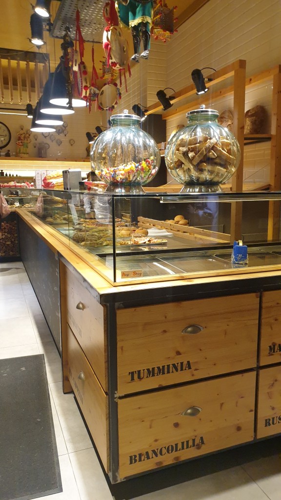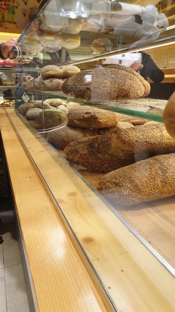 Se mia moglie è una intercettrice di gusti io mi occupo del mio laboratorio quindi delle farine che usiamo. Farine particolari, farine di grani antichi siciliani sia macinate a pietra che a cilindri, diversi tipi di farine dalla Senatore Cappelli, alla maiorca, la perciasacchi la biancolilla, la tumminìa la bidi’ la Simeto, la russello, e poi farine di grano tenero tipo uno, tipo due, zero, doppio zero, per lavorare alcuni dolci, alcuni impasti lievitati, da ricorrenza. I formati variano. Dalle pagnotte da chilo ai bocconcino da cinquanta grammi, anche ai cereali, a riso perché facciamo anche pane di riso, pane di segale e tante altre varietà.