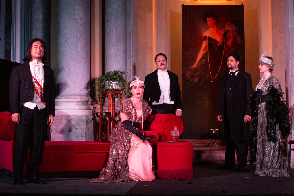 Ciascun cantante ricoprirà un doppio ruolo: i soprani Clara Cusimano e Federica Maggì saranno, rispettivamente, Mimì e Franca Florio e Musetta e Giulia Florio, principessa di Trabia; il tenore Changui Han sarà Rodolfo e Iocu Pocu, ambasciatore dell’Impero del Giappone; il baritono Alfonso Michele Ciulla sarà Marcello e Pietro Lanza principe di Trabia, marito di Giulia. Federico Cucinotta infine interpreterà sia Colline e il conte di Solanto, sia Alcindoro e il duca di Palma. Nei ruoli attoriali Giovanni Mazzara interpreterà Giacomo Puccini, Marcello Iozzia il maestro Leopoldo Mugnone, Alberto Cavallotti Giulio Ricordi, mentre Bebo Cammarata sarà in scena nei panni del suo bisnonno il marchese De Seta, prefetto di Palermo.