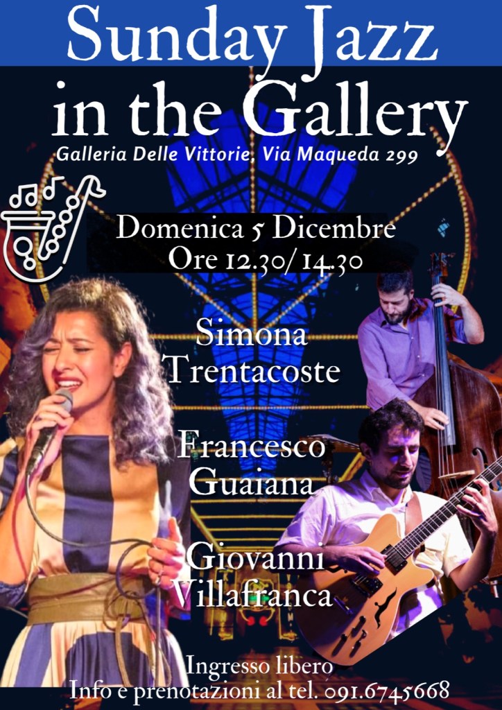 La formazione musicale sarà ospite domenica 5 Dicembre della Galleria delle Vittorie nell’ambito di “Sunday Jazz in the Gallery”, la rassegna che ogni domenica offre la possibilità di trascorrere l’aperitivo delle 12.30 accompagnati dalle più famose sonorità jazz offerte dagli artisti dell’attuale panorama jazzistico siciliano.