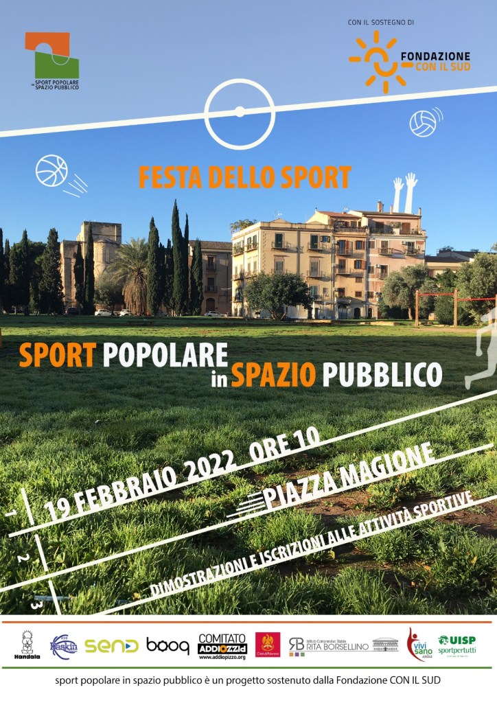 Sabato 19 febbraio dalle 10 alle 14 in piazza Magione a Palermo si svolgerà un evento sportivo aperto alla città per dare avvio al progetto che ha ricevuto il sostegno di Fondazione con il Sud “Sport Popolare in Spazio Pubblico”.