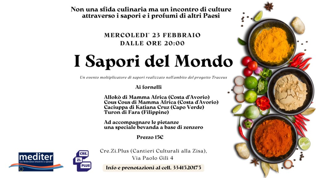 Mercoledì 23 febbraio, a partire dalle 20, ai fornelli del Cre.Zi.Plus diversi cuochi provenienti da Costa D’Avorio, Capo Verde e Filippine prepareranno piatti tipici.