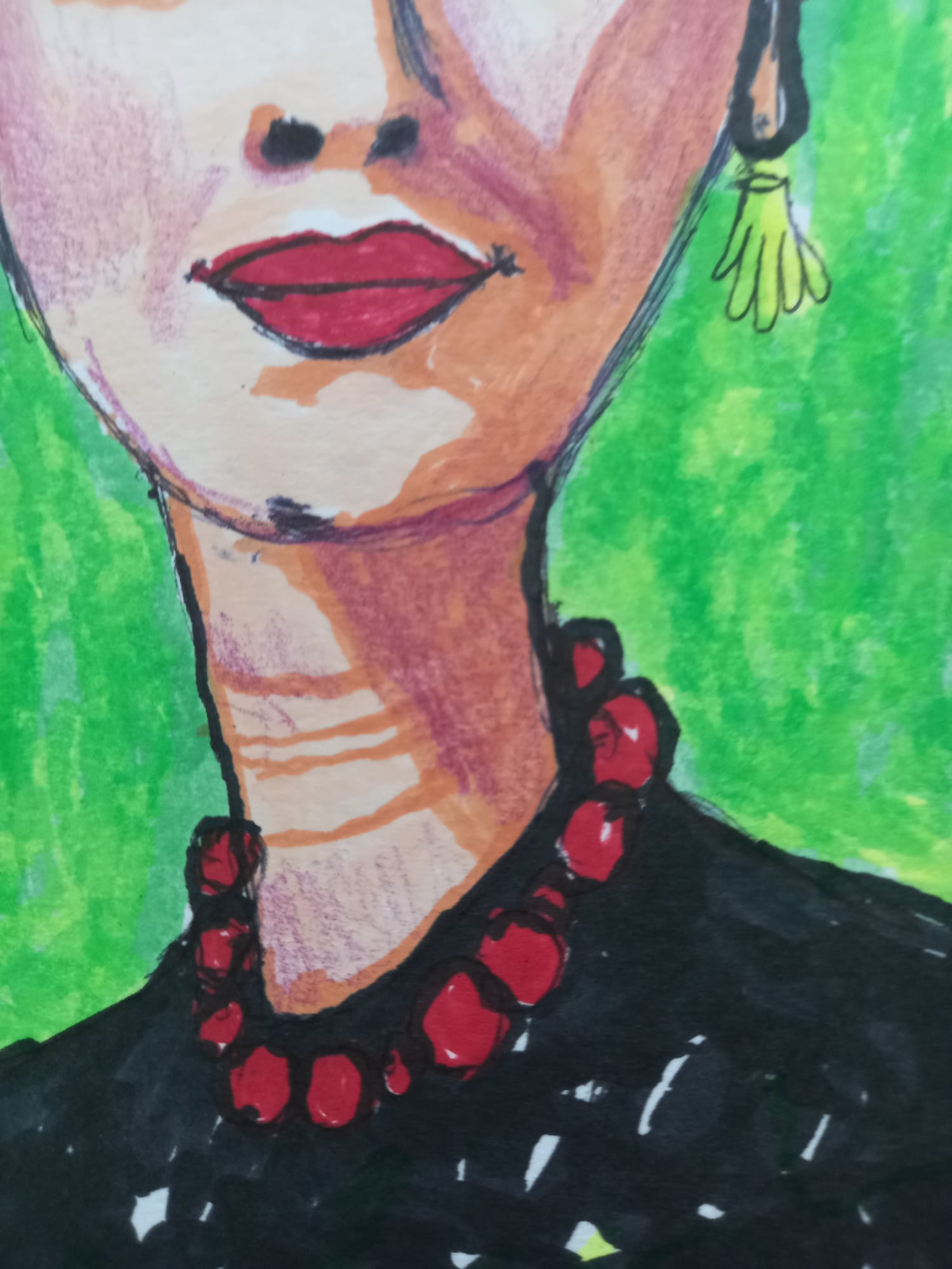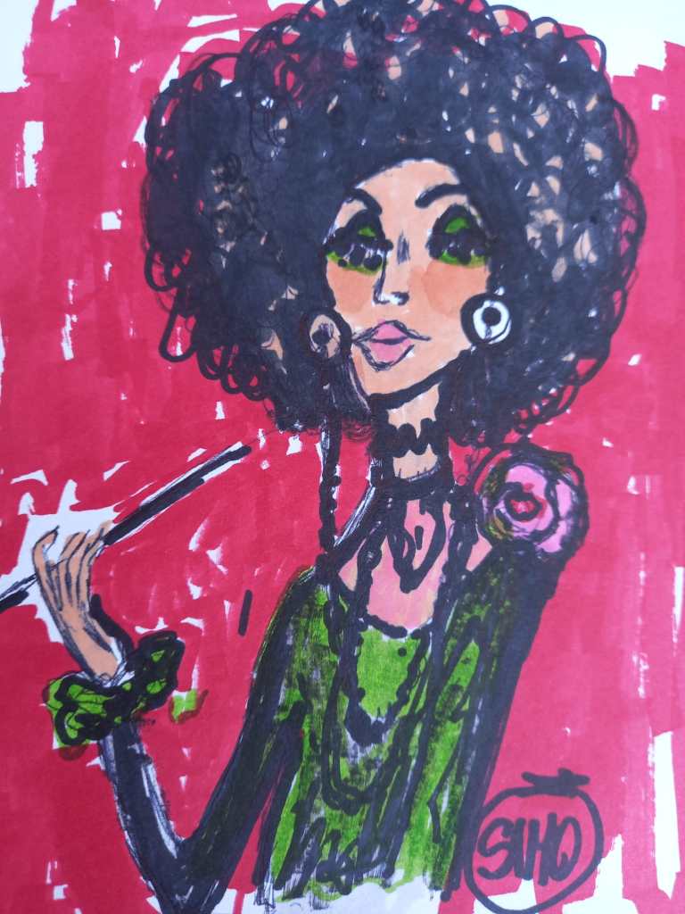 “Ho sempre amato disegnare e dipingere – spiega – , da ragazzina mi piaceva riprodurre per esempio tutti i personaggi di Hugo Pratt, ma crescendo mi sono appassionata a disegnare e dipingere volti di donna con occhi molto intensi e pieni di trucco anticonvenzionale. Uso principalmente i pantoni per stendere capitare di colore e biro per realizzare i disegni, non esistono gomme e matite…”