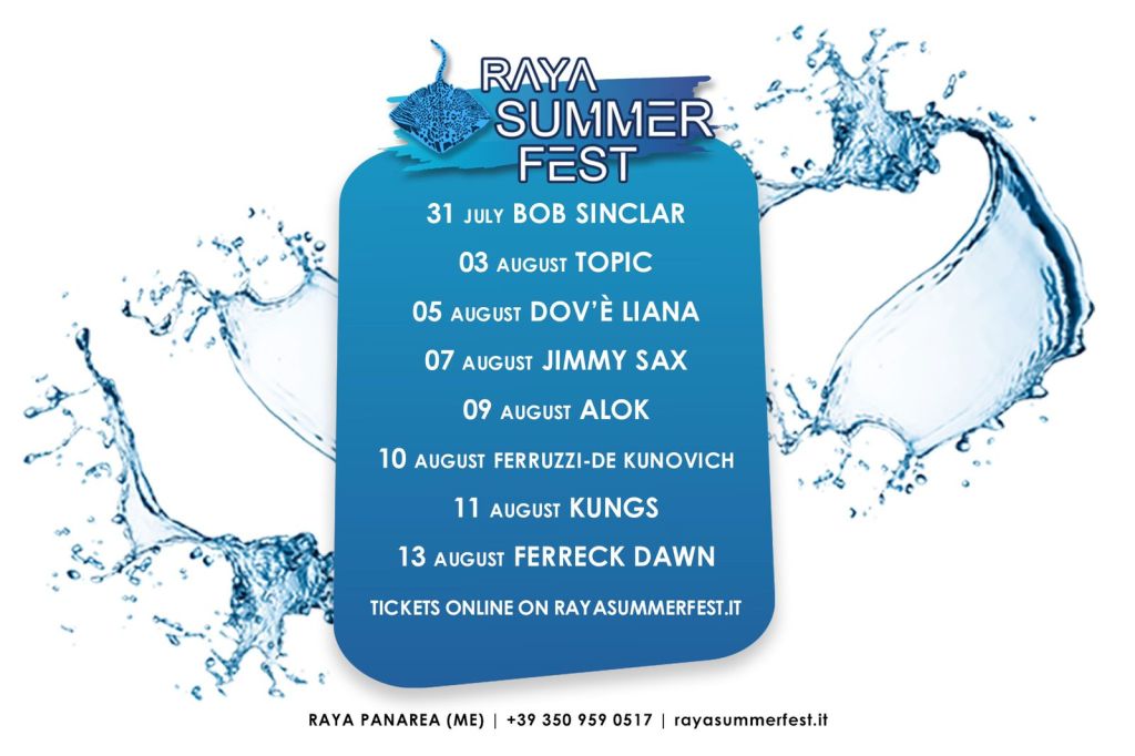 Si svolgerà a Panarea, dal 31 luglio al 13 agosto il Raya Summer Fest. Ospitato nell’hotel Raya levento prevede la partecipazione dei più noti protagonisti della scena Edm (Electronic dance music) internazionale.