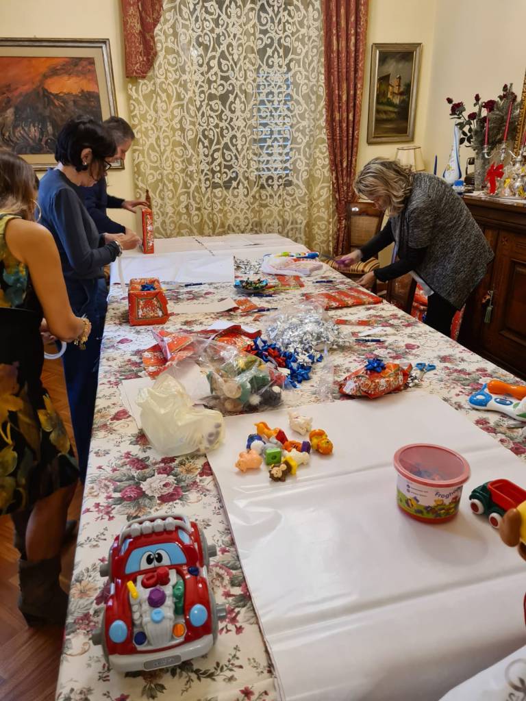 I soci li hanno sanificati, impacchettato nelle tradizionali carte natalizie da regalo. I pacchetti sono così stati suddivisi e contrassegnati per genere ed età.