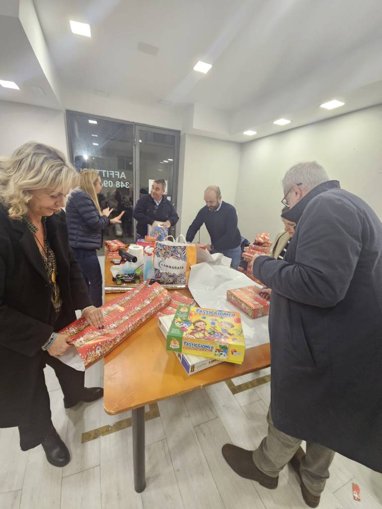 I soci li hanno sanificati, impacchettati nelle tradizionali carte natalizie da regalo. I pacchetti sono così stati suddivisi e contrassegnati per genere ed età.