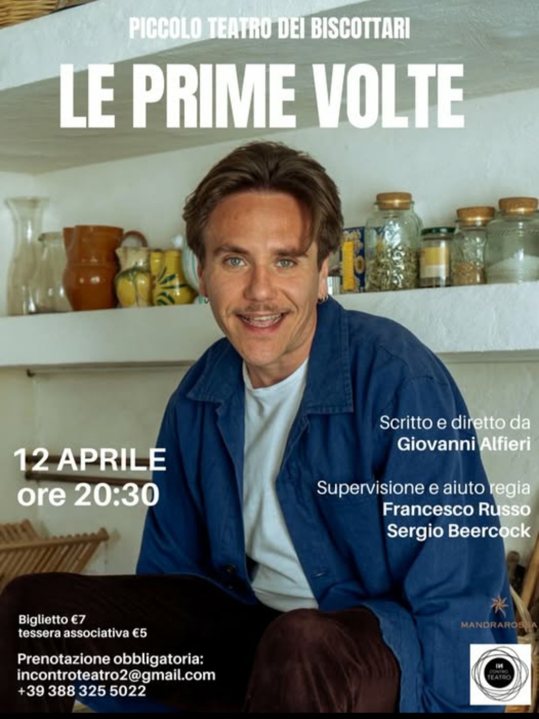 Domenica12 aprile alle 21,30 al Piccolo Teatro dei Biscottari al civico 27 della via omonima, andrà in scena il lavoro di Giovanni Alfieri, dal titolo "Le prime volte".Scritto e diretto da Giovanni Alfieri, Un monologo comico autobiografico che attraversa sesso, famiglia, pornografia, provincia, teatro e morte, portando sul palcoscenico il disordine emotivo di una generazione … Continua a leggere Si ride domenica 12 aprile al Piccolo Teatro dei Biscottari con “Le prime volte” di Giovanni Alfieri