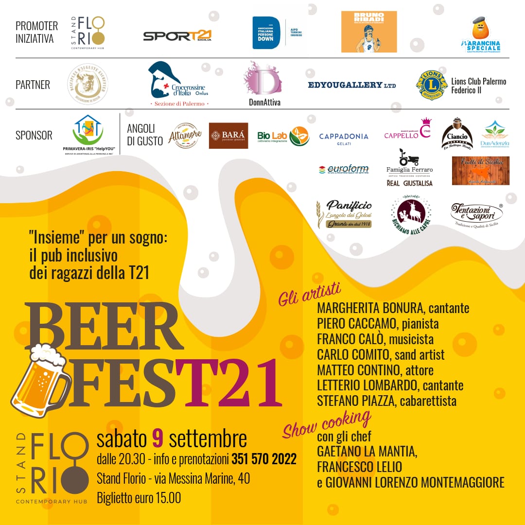 Si chiama BEERFEST21 la oktoberfest della birra prodotta dai ragazzi con sindrome di Down, ovvero Trisomia 21. Sabato 9 settembre la BEERFEST21 si svolgerà allo Stand Florio con inizio alle ore 20 e trenta. Durante la serata si esibiranno la cantante Margherita Bonura, il pianista Piero Caccamo, il musicista Franco Calò, l'attore Matteo Contino, il … Continua a leggere Cabaret musica e show cooking con la birra prodotta dai ragazzi Down sabato 9 settembre allo Stand Florio per Beer Fest 21